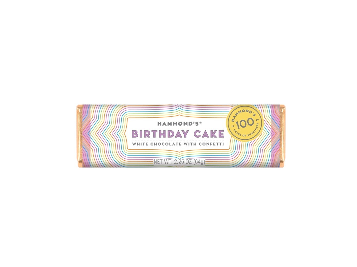 Birthday Cake: Indulge in our Birthday Cake White Chocolate & Confetti Chocolate Bar, the perfect way to celebrate our 100th anniversary! Our creamy white chocolate is mixed with colorful confetti for a festive treat that’s perfect for any birthday party or special occasion. Whether you’re a fan of white chocolate or looking for a fun and delicious dessert, this bar is sure to delight your taste buds!