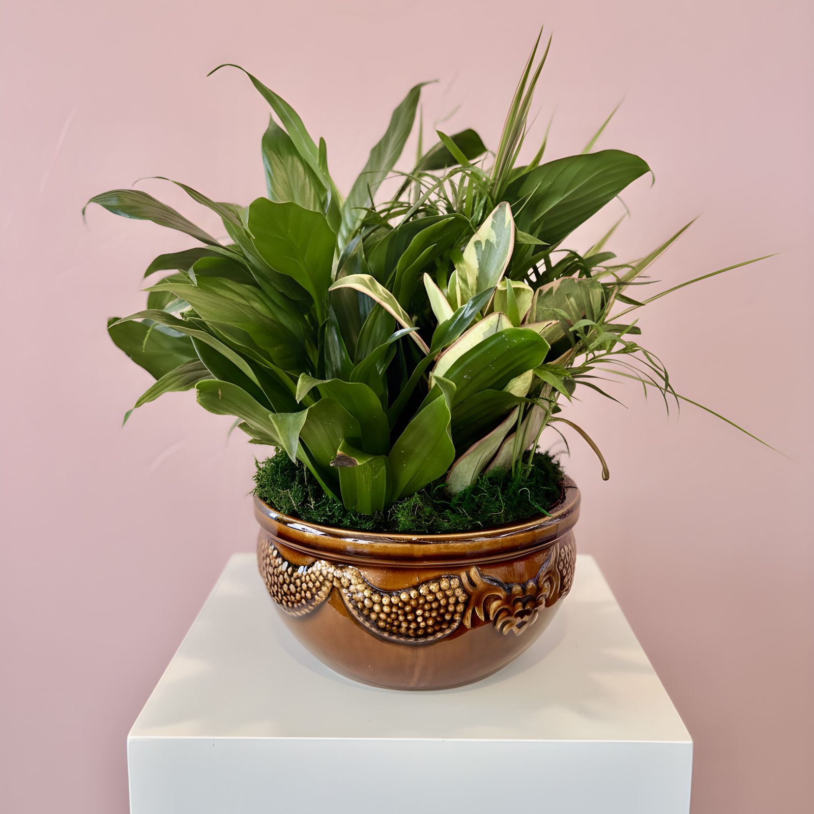 A unique combination of green plants in a ceramic pot, this memorable gift is an excellent way to celebrate shared memories. The sizes are offered in a 8″ or 10″ decorative ceramic container (containers and plants will vary).