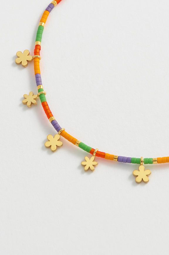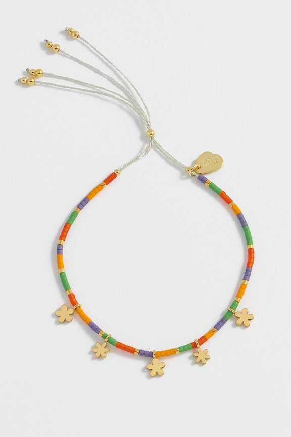 Brighten up your look and your day with our Rainbow Flower Miyuki Bracelet. Featuring ditsy flower charms on a colourfully-beaded chain, this bracelet is sure to add some joy to your outfit.