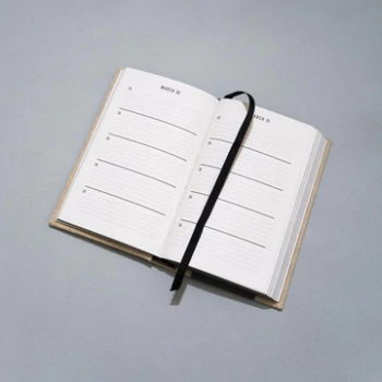 Designed for note takers and journalers, this hardcover journal comes with a gold pen with black ink, and features 144 ruled pages, an elastic band, and a pocket for extra storage.