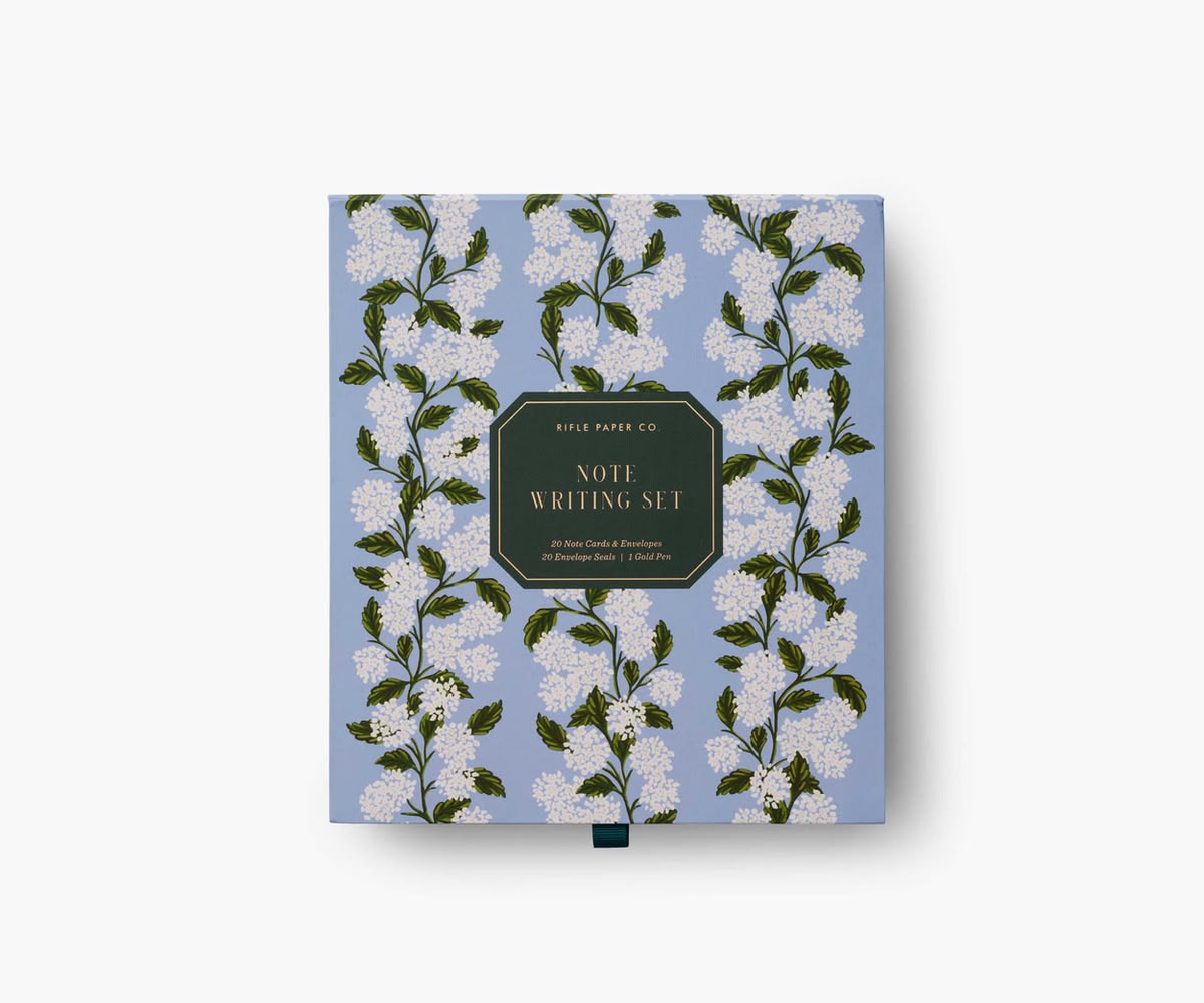 Practice the art of letter writing with our letter writing sets. Each beautifully boxed set includes 40 sheets of letter paper with illustrated designs, 20 coordinating envelopes, 20 gold envelope seals, and a pen.
