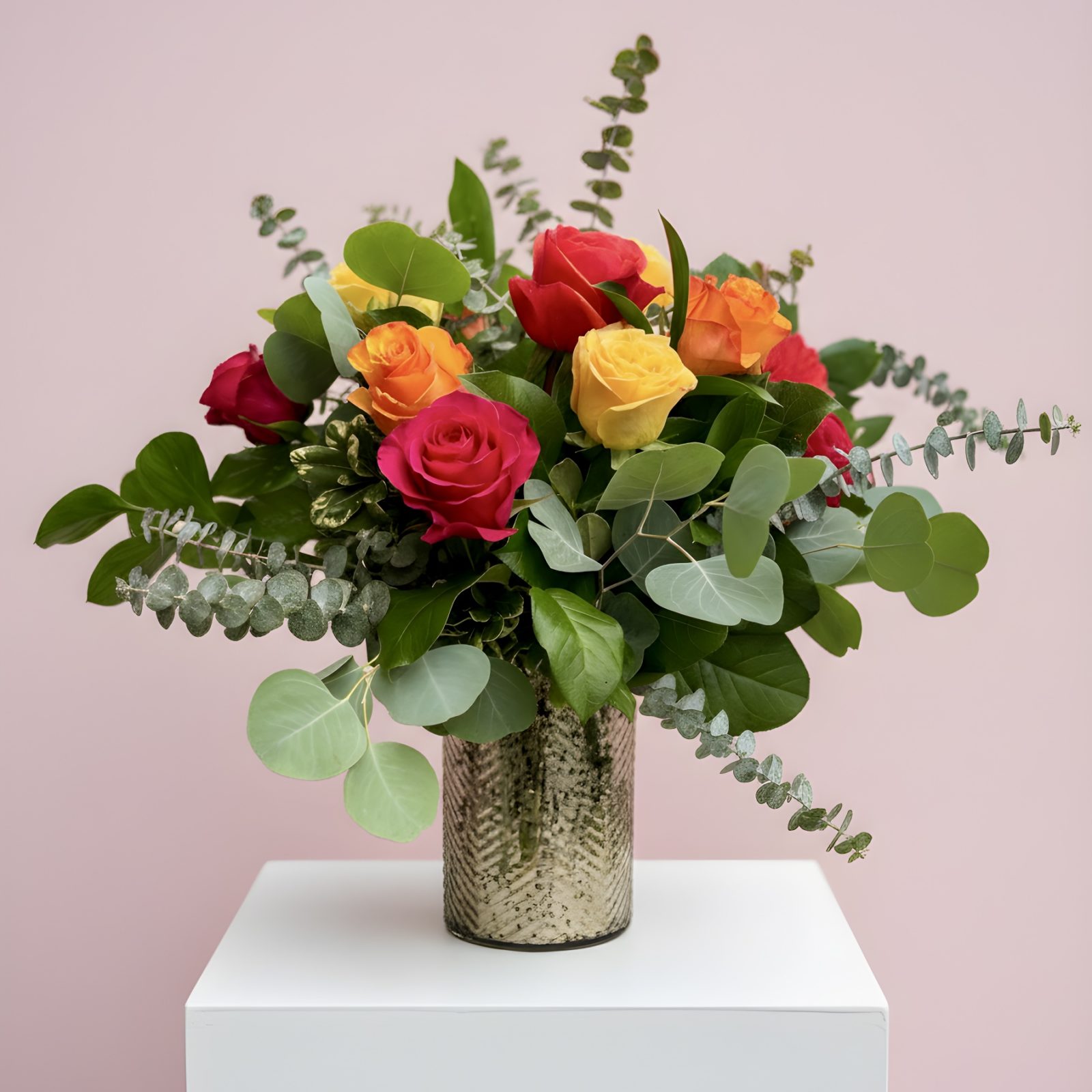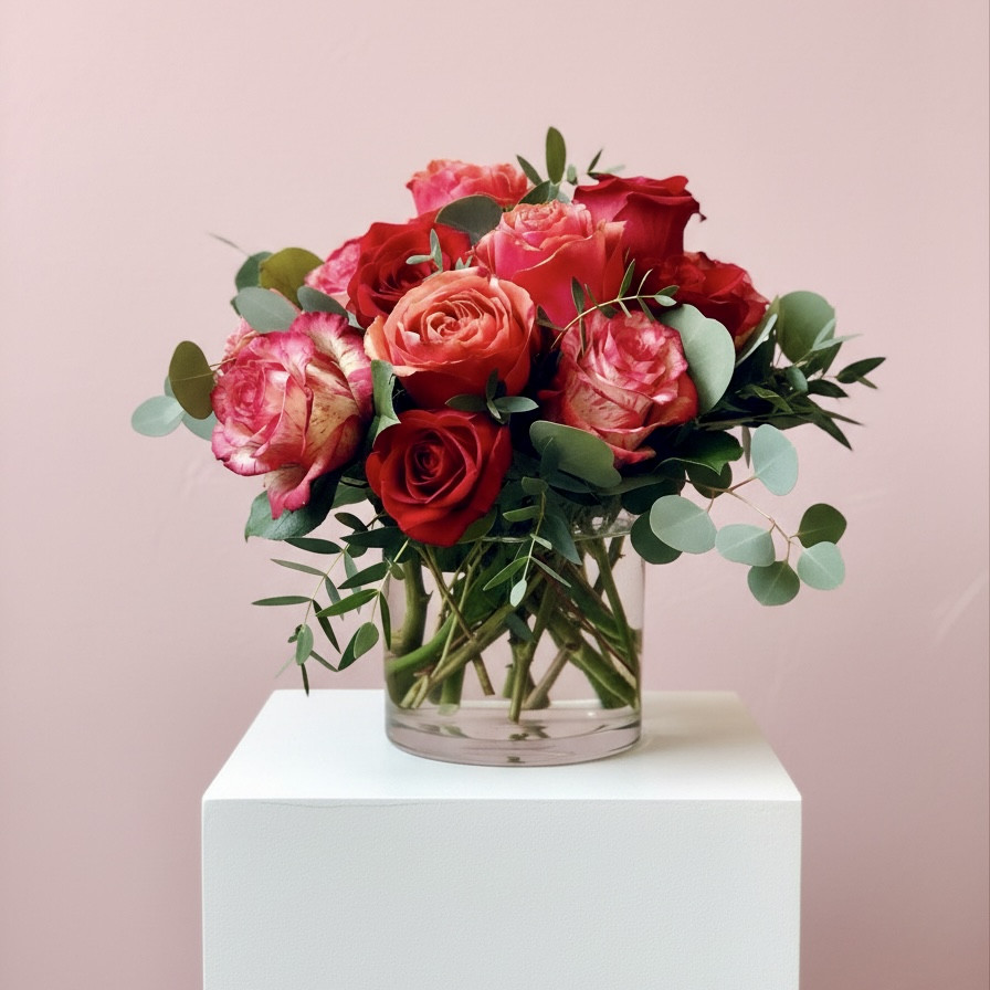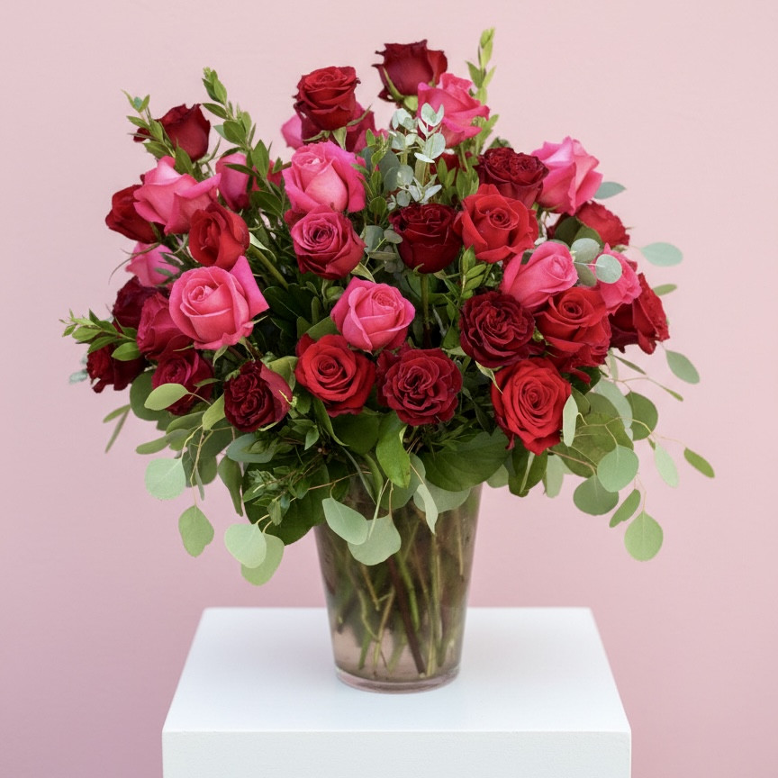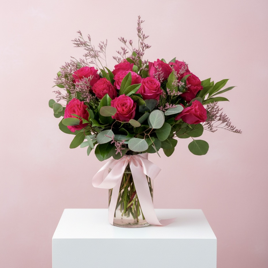 A bouquet of premium roses with seasonal accents and foliage.