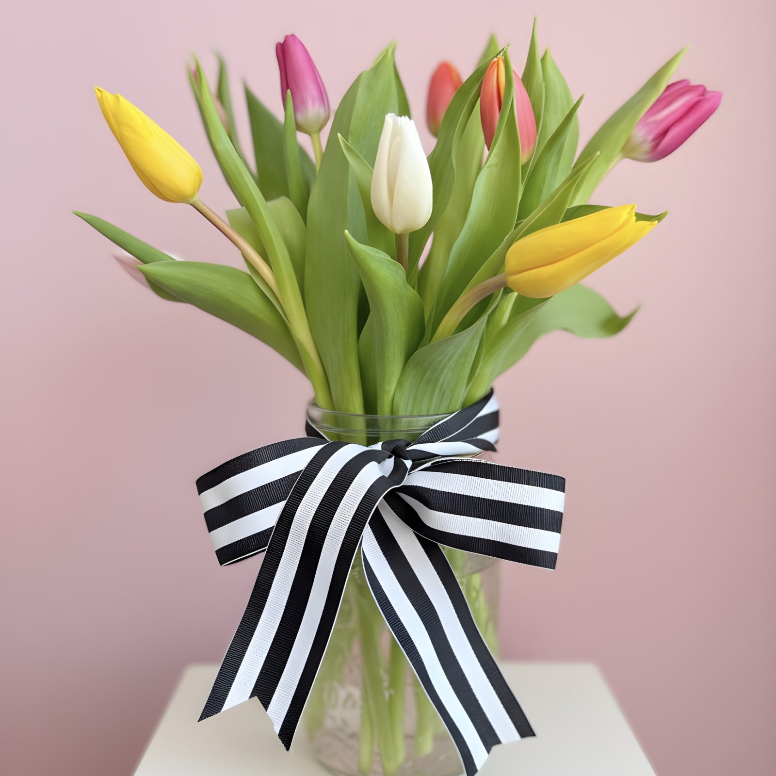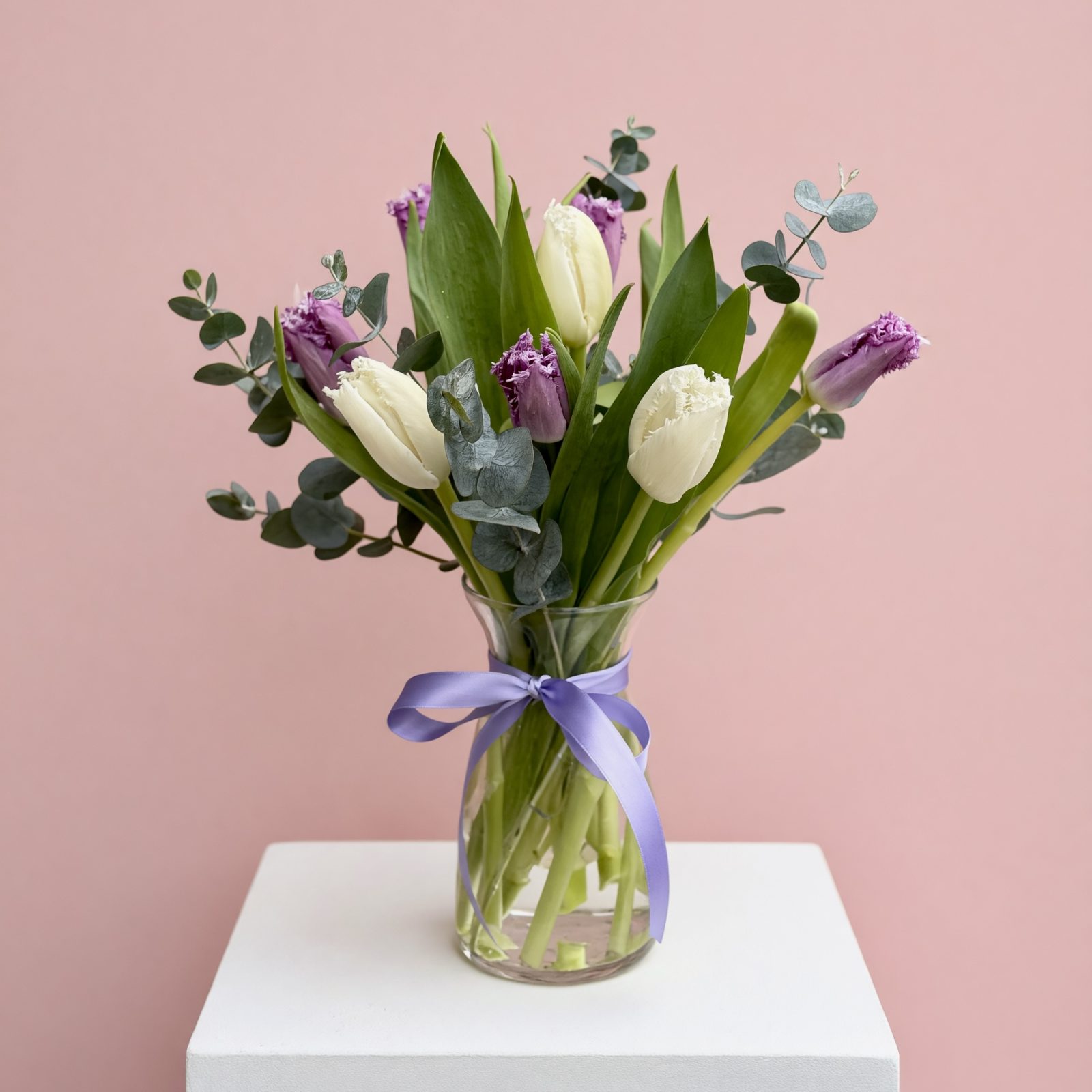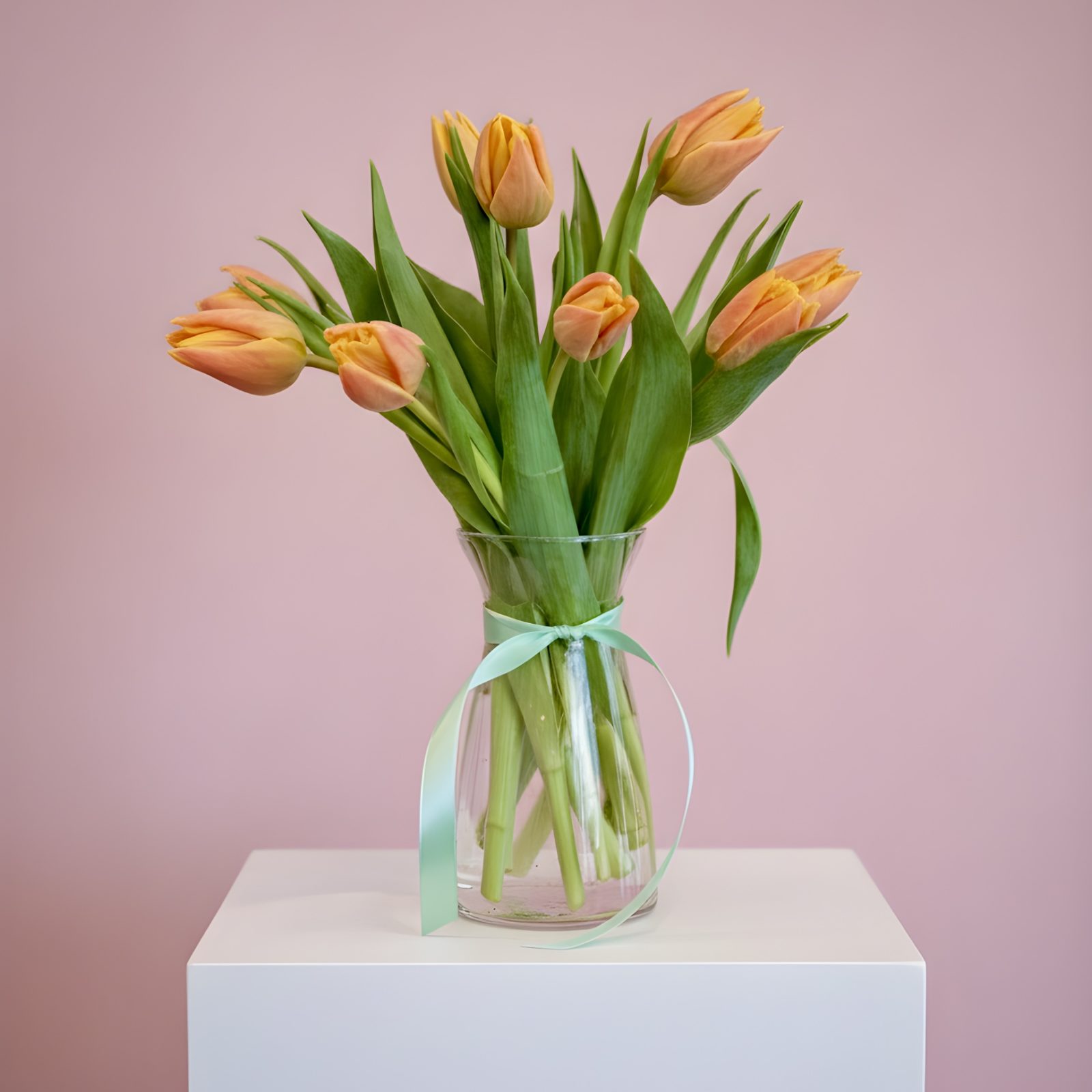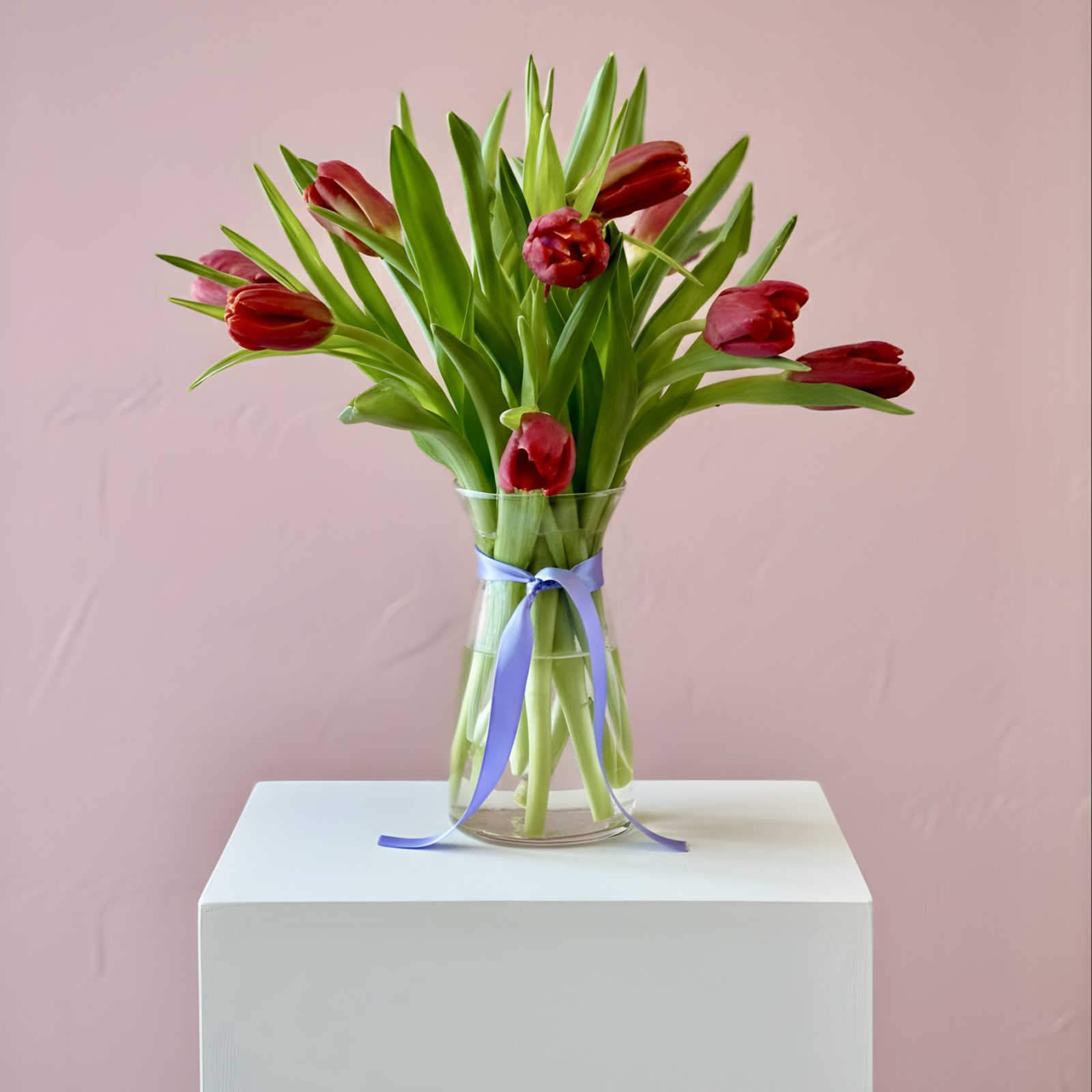 A Bouquet of 10 Tulips in a Vase